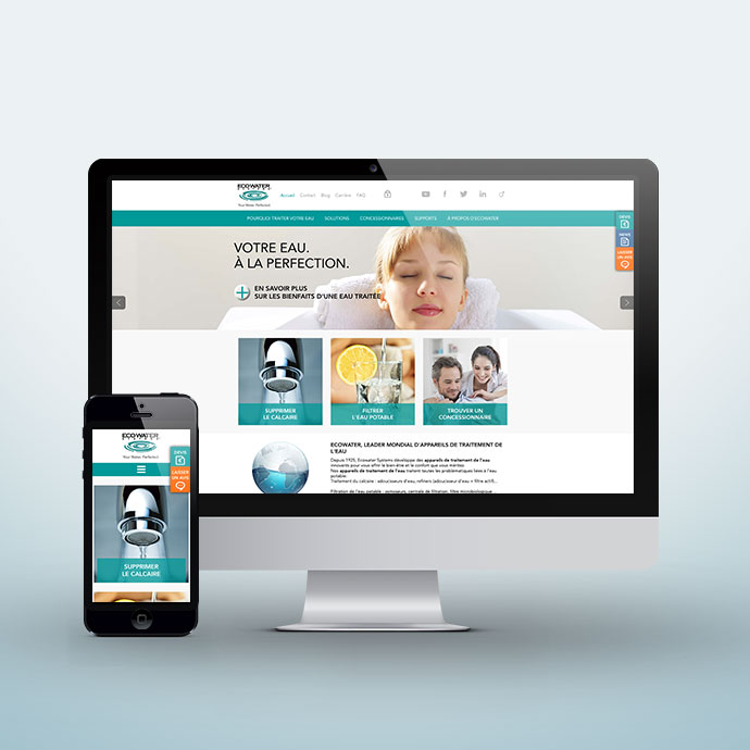 SAILING a réalisé pour Ecowater Systems de nombreux sites de marques (Ecowater, Ecopure, Galaxy, AEG, Noth Star, Elextrolux), et plus particulièrement :