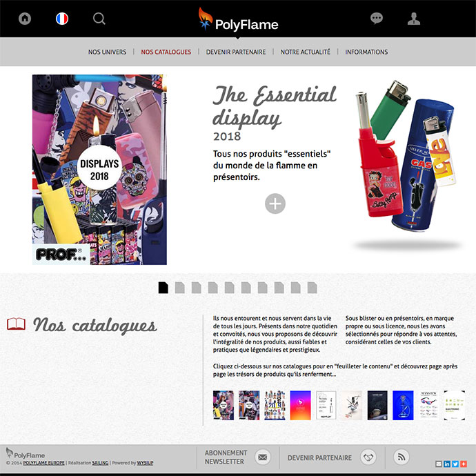 Polyflame est grossiste d'articles pour fumeurs en principal, du briquet à la cigarette électronique et autre accessoires. Ses clients sont les débitants de tabac, civettes, caves à cigares et autres boutiques de cigarettes électroniques…